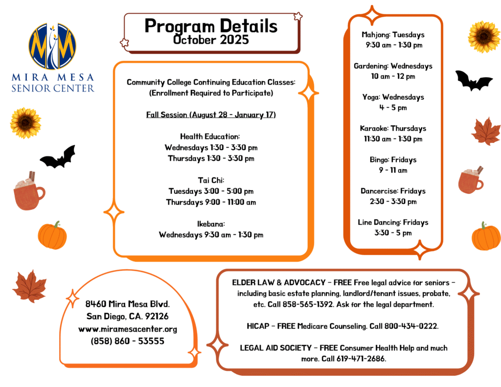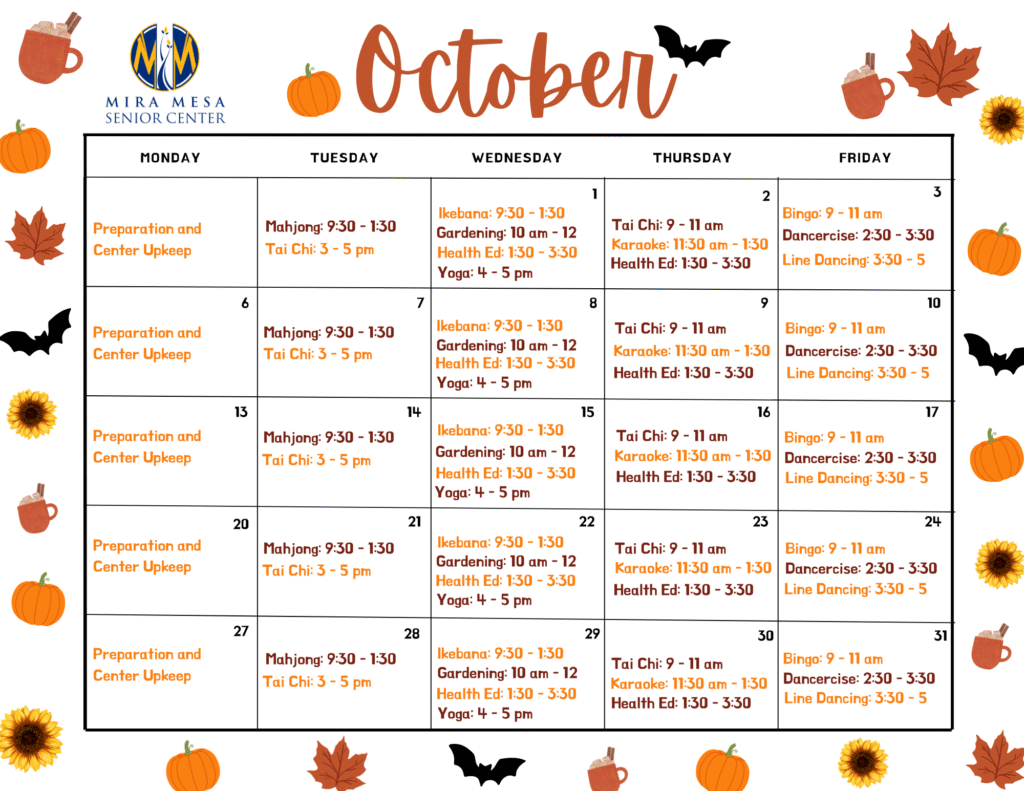 Our October 2025 Calendar and Program List are now available! Click on the link below to see the printable pdf, or click here to view the month calendar!